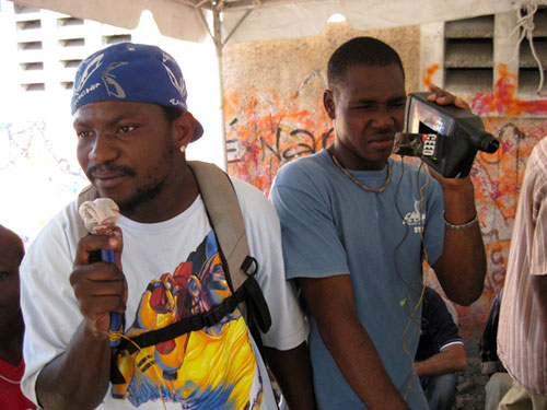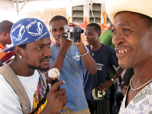 Since 2010, following the major earthquake in Haiti, I have worked on several collaborative projects with Tele Geto, a local group of young men from the community who created a parody news team to report on the first Ghetto Biennale using a repurposed plastic bottle and a stick.