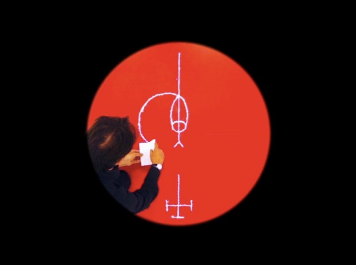 The video recording was projected for the duration of the exhibition onto the place on the floor where it was drawn. More about the making of ‘Ponto for Banbha Mooira’ can be found here.